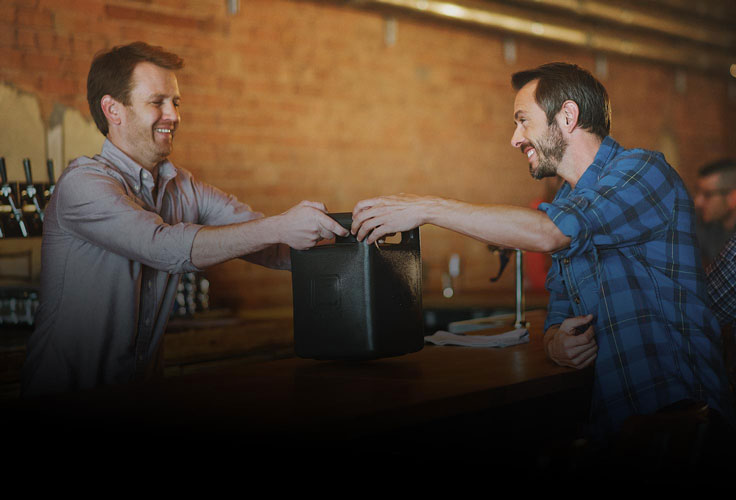 BrewQube can be filled from the tap with your beer of choice at almost any brewery or taproom that fills growlers.